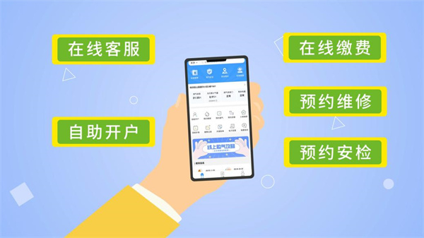 用户通过手机端,可轻松完成燃气缴费、用气情况查询、燃气报装、故障报修等业务;可通过在线客服,随时随地咨询了解燃气服务;可通过系统对上门服务人员进行评价,监督服务标准执行,提升服务质量。