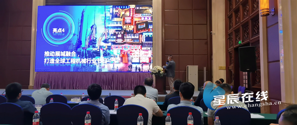 (长沙国际工程机械展览会执行秘书长张飚现场推介。)