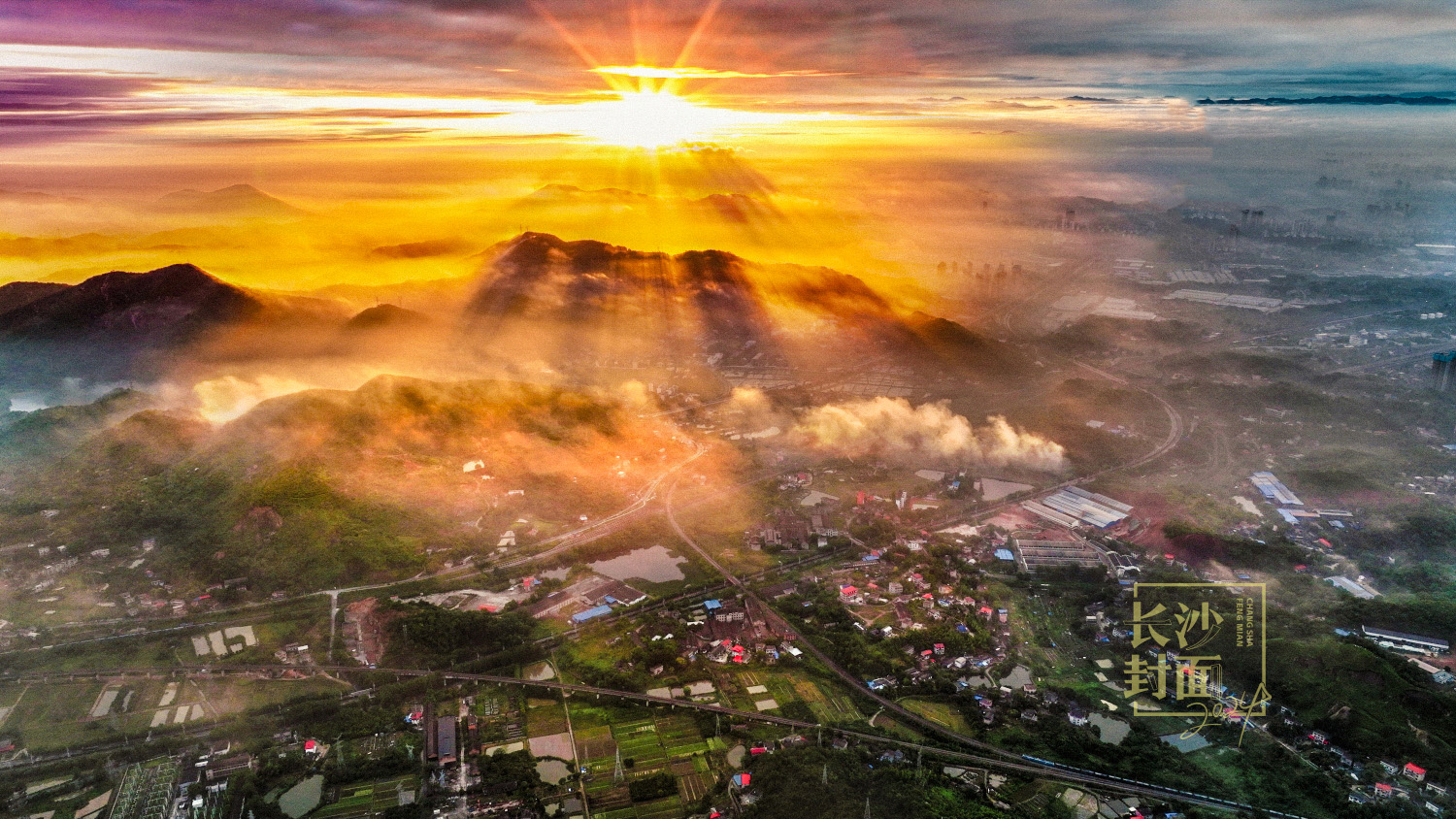 阳光从云隙中倾泻而下,仿佛光瀑一般,形成一条条光亮的“通路”,照射在长沙上空,你见过这样的绝美长沙吗?