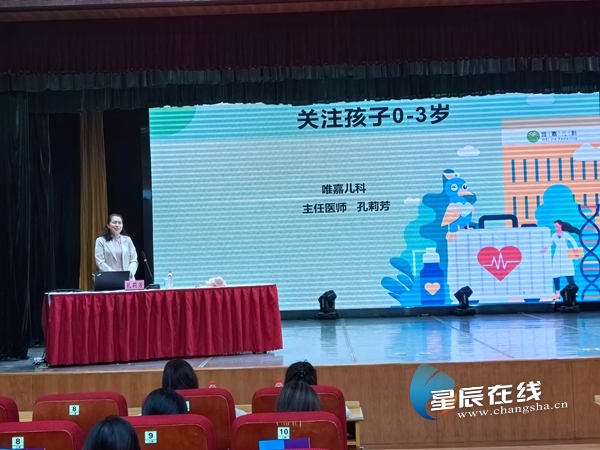 (唯嘉儿科发育行为儿科主任医师孔莉芳围绕0-3岁儿童发育行为特点为学员授课。图片为星辰全媒体记者 文春燕摄)