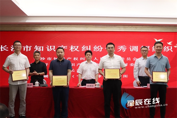(现场为获长沙市知识产权纠纷优秀调解组织的4家单位授牌。图片由 星辰全媒体记者 刘星雨 摄)
