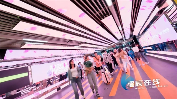 文旅驱动着长沙这座国际消费城市的发展内核,“地铁+文旅”的彩笔被充分激活起来。列车是奔腾的文化空间,湖南旅游发展大会、栀香地铁等文化列车拉近乘客的情感预期与心理预期,地铁站与文旅长沙浑然一体。五一广场站“元宇宙星际广场”成为潮玩胜地,溁湾镇站建有国内首座地铁数字艺术馆,迎宾路口站“翩翩是安化”中国水墨风文化墙体秀美灵动……一城风华,地铁揽阅。