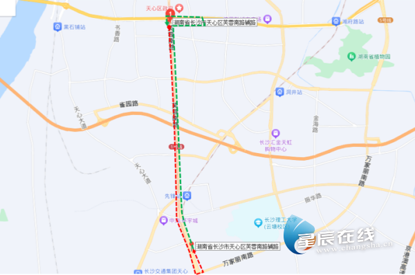 下行:从尚双塘站3号口发车,经芙蓉路至省政府·清风站3号口。