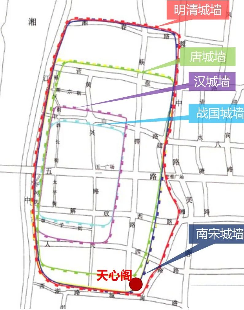 距今2800年前,楚国在长沙今天的五一广场修筑邑城,以此“抚有蛮夷,奄征南海”,千年古城就此诞生。历经邑城、王城、郡城、州城、都城、省城的迭代演变,城祚千年,世所罕见。