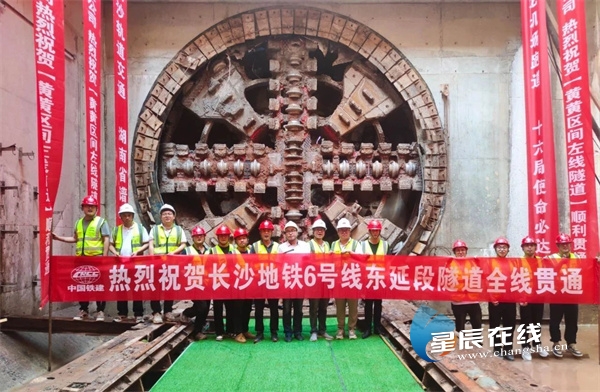 星辰在线5月16日讯(星辰全媒体记者 岳珊 彭穗)5月16日上午10时,在长沙地铁6号线东延段工程建设者们的欢呼见证下,“空港四号”盾构机刀盘在T1T2站破土而出露出“真容”,顺利抵达接收工作井,标志着6号线东延段工程全线区间隧道顺利贯通。
