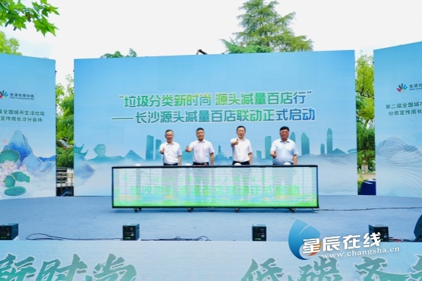 活动现场举行了长沙源头减量百店联动点亮地图启动仪式。此举旨在通过商家联动,实现垃圾源头减量,打造绿色商业环境。各行各业代表齐聚一堂,共同发出源头减量全民参与的倡议,呼吁广大市民和商家从日常小事做起,减少垃圾产生,助力城市绿色发展。