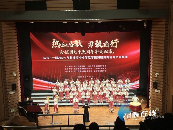 星辰在线6月1日讯(星辰全媒体记者 文春燕)5月31日晚,长沙音乐厅麓山中厅灯火辉煌,一场以“热血当歌,勇毅前行,向祖国七十五周年华诞献礼”为主题的庆六一暨2024年长沙市中小学教学班演唱演奏优秀节目展演在此盛大举行。