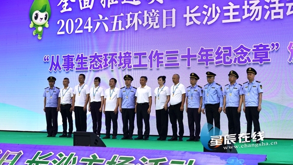 星辰在线6月5日讯(星辰全媒体记者 文春燕)6月5日上午,2024年六五环境日长沙主场活动在湖南松雅湖国家湿地公园举行。活动中,长沙市生态环境局发布了《2023年长沙市生态环境状况公报》,启动了“全民行动,建设美丽长沙”项目,并为长沙市12名“从事生态环境工作三十年纪念章”获得者颁发奖章。