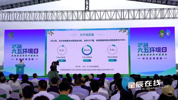 今年我国六五环境日的主题是“全面推进美丽中国建设”。2023年,长沙市生态环境质量持续改善。长沙市空气质量优良天数为321天,优良天数比例为87.9%,在省会城市排名第11位,较2022年前进9位。长沙市地表水水质总体为优,全市32个国、省控断面年度水质优良率为100%。市级和县级集中式生活饮用水水源地水源达标率和水量达标率均保持100%,连续11年水质达标率均保持在100%;长沙市声环境质量整体状况良好,城市区域环境噪声昼间平均等效声级为53.1分贝,较上年下降0.8分贝。
