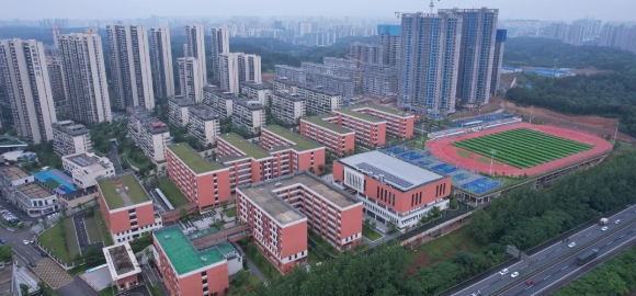(长沙市雅礼实验毓秀学校(原牛头村中学)鸟瞰图。)