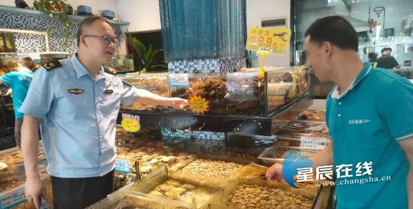 (宁乡市市场监管局执法人员随机对已称重结算的海鲜水产类产品进行复秤检查。图片均由 通讯员 提供)