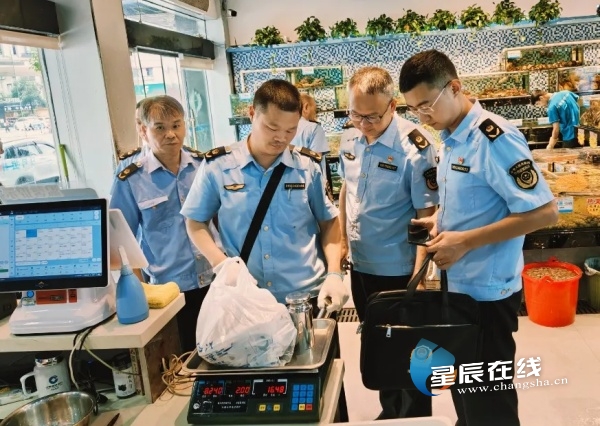 为确保专项整治成效,宁乡市市场监管局执法人员采取突击抽查的方式,随机对已称重结算的海鲜水产类产品进行复秤检查,并添加标准砝码进行比对,以判定电子秤的准确度。