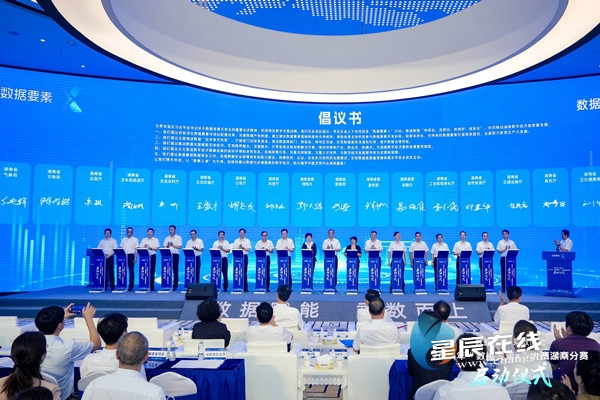 仪式现场,省数据局还联合省委宣传部等18个省直单位,共同签署释放数据要素价值、推进湖南数字经济发展的“数据要素×”倡议书,旨在以此次湖南分赛为契机,共同合作发挥数据基础资源作用和创新引擎功能,深入实施“数据要素×”行动,书写好中国式现代化湖南篇章数据章节。