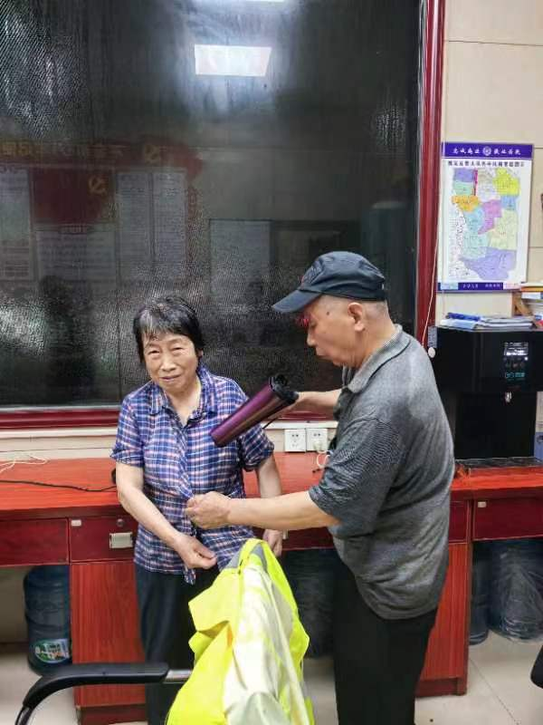 雨花交警二中队民警在路上巡逻帮助群众的同时,主动邀请过路群众来岗亭避雨,并化身“托尼老师” ,为市民提供吹头发等服务。