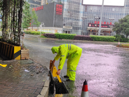 拉上警戒线、清理收水口、检查管道……结合往年汛期特点,湘江新区行政执法局工作人员于汛期来临前在易积水路段,对沿线雨水箅子进行逐一排查,第一时间清理箅子周边的垃圾杂物,保证排水口通畅。