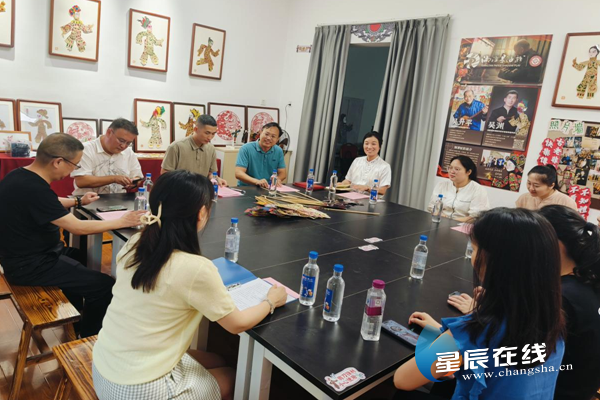座谈会上,纸影戏影偶制作技艺省级非遗传承人吴渊大师介绍到,湘潭纸影是南方皮影戏的代表,是中国皮影戏的重要组成部分,吴家祖上制作和表演纸影戏的传统至今已有数百年,他是爷爷吴升平是第20代传人。