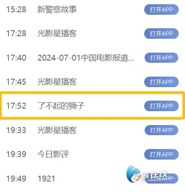 星辰在线7月1日讯(星辰全媒体记者 易博奇)今日17时52分,央视电影频道(CCTV6)《了不起的狮子》即将播出。该片取景望城,反映望城基层工作,时长约98分钟。
