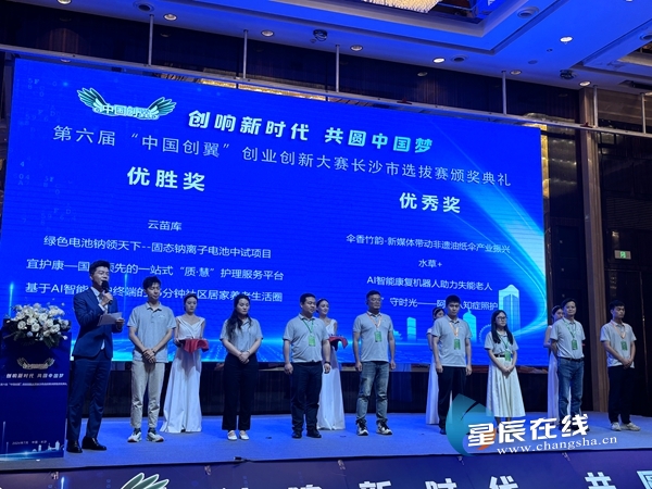 (7月2日,第六届“中国创翼”创业创新大赛长沙市选拔赛(决赛)落幕。图为一等奖颁奖现场。)