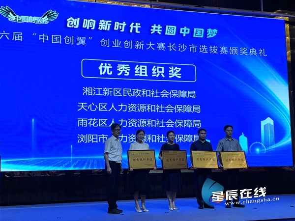 星辰在线7月2日讯(星辰全媒体记者 文春燕 通讯员 熊知) 7月2日,第六届“中国创翼”创业创新大赛长沙市选拔赛(决赛)落幕。湖南省就业服务中心党委书记、主任陈荣鑫,长沙市人大常委会党组成员、副主任杨长江,长沙市政府副秘书长、二级巡视员王新良,长沙市人社局党组书记、局长胡春山出席此次比赛颁奖礼。
