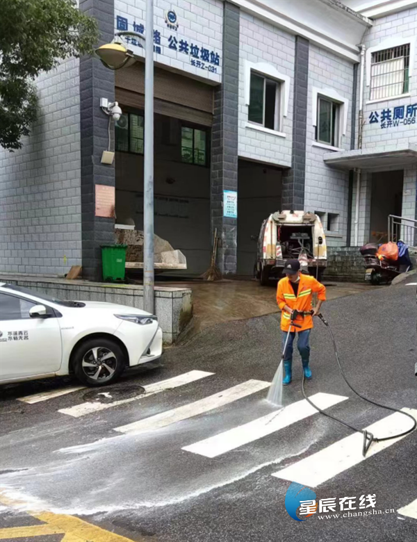 组织洒水车、洗扫车等多种环卫作业车辆、作业人员,按照“洗扫到边,冲洗到角”的作业原则,对黄兴北路、三一大道、福元路桥、浏阳河桥等重点道路桥梁、五一商圈、四方坪夜市周边等重点区域开展精细化清洗作业,冲洗清洁强降水带来的泥泞、碎石、树叶等地面杂物,确保以最快速度恢复干净整洁的市容环境。