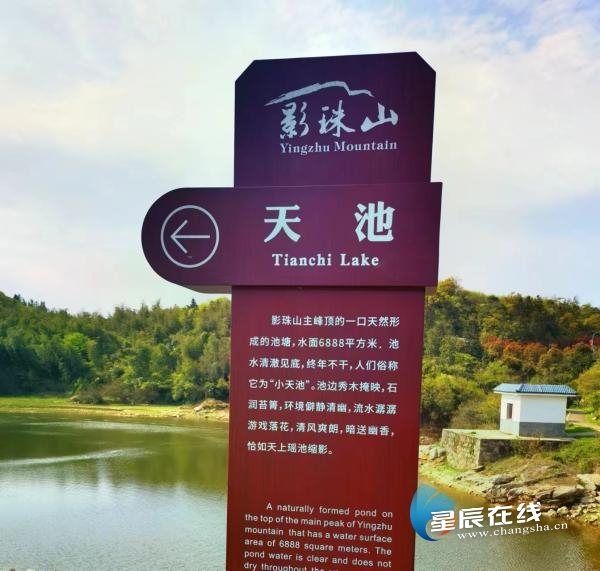 影珠山顶有一口水面约7000平方米天然形成的池塘,池水终年不干,清澈见底,俗称“小天池”。环湖秀木掩映,石润苔箐,僻静清幽,清风送爽,花草飘香。池边有不少人在路边铺垫野餐,堤坝上的草坪可以自搭天幕、帐篷,堤坝下方的天涧溪有竹林木屋可供露营……