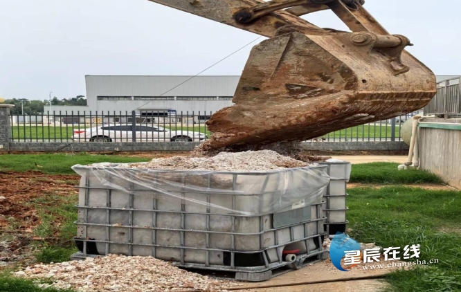5月7日至8日,执法人员调用挖掘机将倾倒在污水处理站与焚烧锅炉房之间空地下的物化污泥挖出,根据现场称重,两次挖出的物化污泥共计52.48吨。