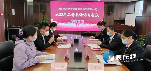 (2023年5月23日,鸿运物业集团工资集体协商会议召开。)