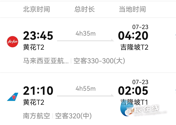 长沙往返马来西亚吉隆坡一周11班。其中南方航空每日1班,马来西亚亚洲(长途)航空一周4班。