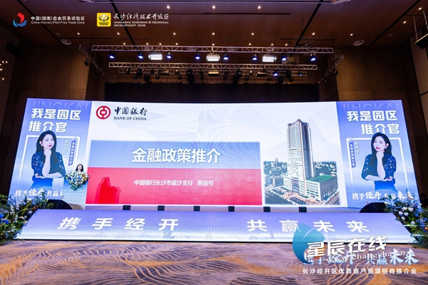 (长沙经开区的园区推介官从招商引资、人才政策、优质地块、优质资产、金融政策等方面推介优势资源。)