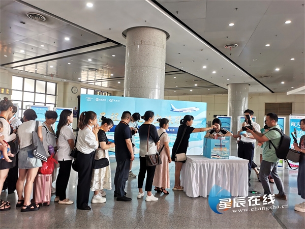 星辰在线8月10日讯(星辰全媒体记者 郭凤湘 通讯员 李敏娜 吴冬)8月9日下午,由长沙机场主办的“星程天地·空铁联运”长沙机场“经长飞-岳阳行”推介会在岳阳高铁东站一楼候车厅内举办。来自南方航空、厦门航空、海南航空、同程旅行以及岳阳当地20家旅行社等多家单位的代表参加推介会,活动现场为当地旅客发放了特价机票、免费磁浮票等权益及优惠政策,为岳阳人民开启快速便捷的出行模式。