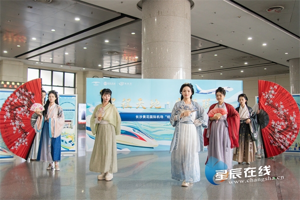 在现场,联运竞答有礼、牵红绳赢礼品、派手链连好运等互动游戏,深受旅客欢迎。一个个身着汉服、仙姿窈窕的“织女”们,从高铁站台轻盈而下直奔出站口,与正在等待接站的“牛郎”们会面,一路吸引旅客纷纷驻足,打卡拍照。还有“月老王婆”“牛郎织女”快闪巡游,为过往情侣及旅客派送好运红绳及精美礼品,并赠送磁悬浮免费票,助力岳阳高铁旅客享受一站式空铁联运服务。