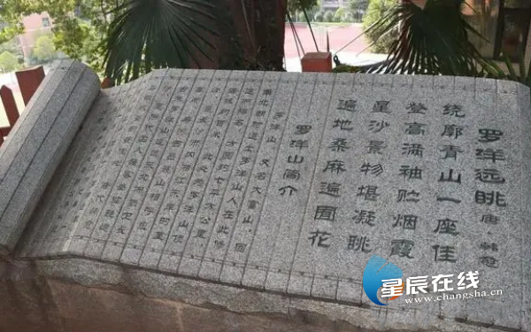 罗洋山顶是古长沙城湘江以东最高处,不仅名字独特,更因韩愈等的诗文而名扬四海。因为获得皇帝大赦后就任新官,唐代大文豪韩愈在调任湖北江陵府(今荆州市)法曹参军途中,心情大好,本应如李白一样“朝辞白帝彩云间,千里江陵一日还”的喜悦心情,却在途经长沙时,专门到罗洋山一游,留下著名诗篇《罗洋远眺》诗云:“绕廓青山一座佳,登高满袖贮烟霞。长沙景物堪凝眺,遍地桑林遍囿花。”他在长沙还写有《陪杜侍御游岳麓道林两寺》一诗云:“长沙千里平,胜地犹在险。况当江阔处,斗起势匪渐。深林高玲珑,青山上琬琰。路穷台殿僻,佛事焕且俨。”他久闻衡山岣嵝峰有摹岩石刻禹王碑,便专门去游览衡山寻碑,有其《禹王碑》诗作证:“岣嵝山前神禹碑,字青石赤形朴奇。蝌蚪拳身薤叶披,鸾飘凤泊拿蛟螭。事严迹秘鬼莫窥,道人独上偶见之。我来咨嗟涕涟湎,千搜万索何处有?”