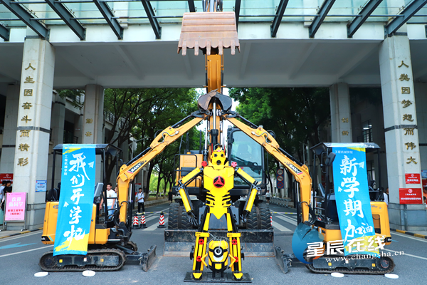 星辰在线9月9日讯(星辰全媒体记者 文春燕 通讯员 高妍)独特的挖机造型、2.3米“变形金刚”模型、小造型奇特的焊接作品、自制人体工学椅……9月7日,湖南三一工业职业技术学院(以下简称“三一职院”)迎来全国各地新生报到,智能焊接、工程机械、数控技术、室内设计等各专业学生自制课程作品,引得新生及家长纷纷侧目。更有物流专业学长开着叉车穿梭其中,为新生搬运行李,新生及家长们纷纷表示:“太有特色了!”