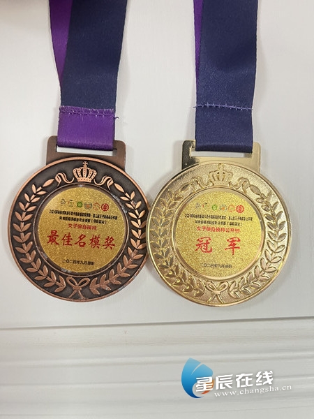 (2024年湖南体育旅游节暨湖南省健美健身职业联赛(邵阳县站)上,星辰在线全媒体记者孙烨(左一)获得女子健身模特公开组冠军。)