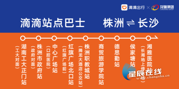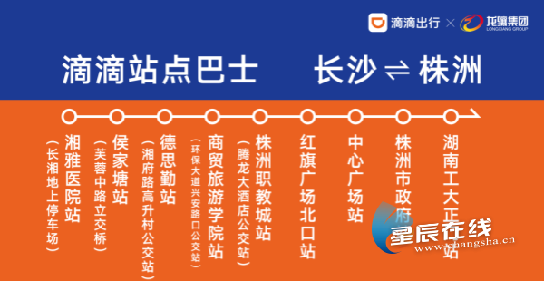 (长沙交投·龙骧集团联合滴滴出行开通长沙⇌株洲“站点巴士”新线路,试运行期间票价为9.9元。)
