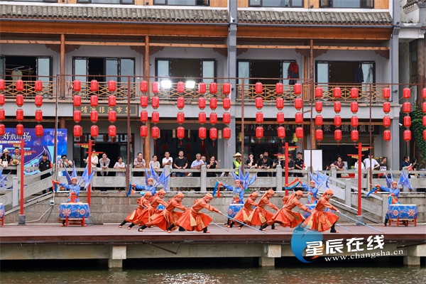 漫步在靖港古镇的古街之上,非遗特色店铺琳琅满目,走进八元堂,喝一碗大碗茶,听一出花鼓戏,变脸、茶艺表演等让人拍手称快,览胜景、看演艺、品民俗、尝美食、赏焰火,采访团通过水上梨园游船、千年古街漫游、沉浸式互动等多种方式,从“吃行游购娱”等多重维度探索新靖港。
