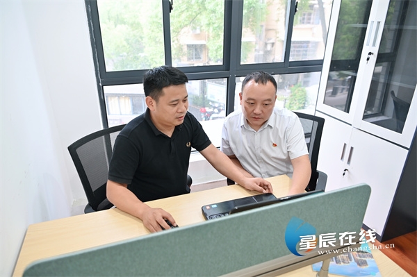 日前,记者走进位于火星街道的火星科创空间时,曾治国正与去年10月入驻的湖南讯全智能科技有限公司负责人蔡伟根据目前市场情况商讨今后的营销重点。