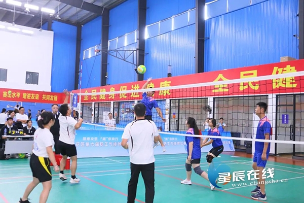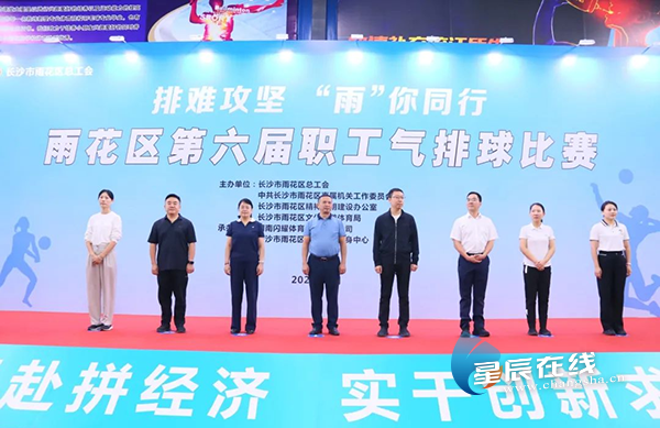 (“排难攻坚、‘雨’你同行”雨花区第六届职工气排球比赛开赛。)