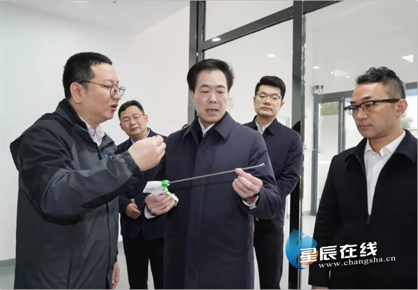 (宁乡市委书记张作林在湖南思捷泰克医疗科技有限公司调研。)