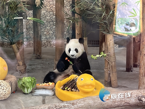 (大熊猫“大美”正在“撸串”。图片均由 彭穗 摄)
