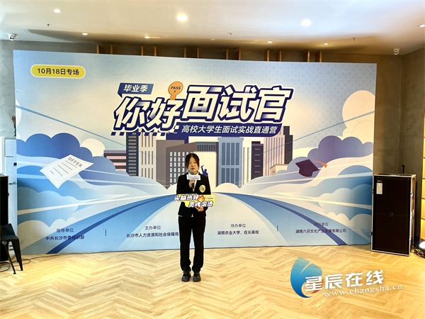 星辰在线10月18日讯(星辰全媒体记者 郭凤湘 实习生 夏金花)“假设你正在领导一个多部门协作开展的项目,但各部门之间存在沟通障碍,影响了项目进度,你会如何打破这些壁垒、促进有效沟通?”“如果你的领导给你分配了一件与你工作毫不相干的任务,这样你的本职工作就无法完成了,你会怎样做?”10月18日上午,“你好!面试官”高校大学生面试实战直通营第三场专场活动在湖南农业大学热力开“试”,50名大学生迎接5家企业负责人的层层考验,现场氛围紧张又激动人心,近102万人次线上共同观看,活动直播评论区更是互动连连。