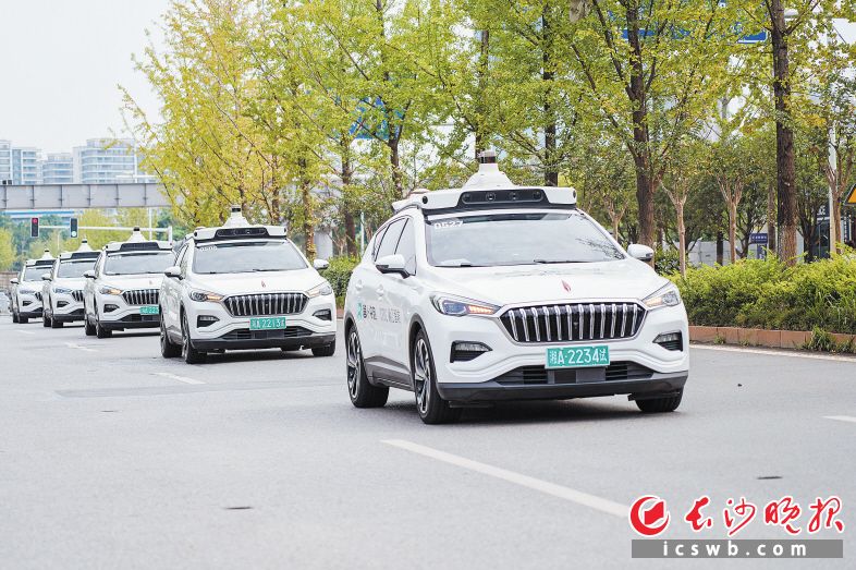 长沙街头的“萝卜快跑”自动驾驶出租车,其无人自动驾驶技术主要得益于北斗系统。 柯鸣 摄