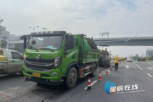 12日上午,记者跟随工作人员来到开福区青竹湖路与华宁路交界一处道路施工现场。路面铣刨、乳化喷层、摊铺沥青......天空下起细雨,施工现场热火朝天。“因青竹湖路靠近高速收费站,是许多大件运输车辆的必经之路,这些载重车辆对路面破坏非常大。”开福区市政设施维护中心外城维护一队队长王振忠告诉记者,此次修复的面积约3000㎡,冬季低温容易造成道路面层松散、泥泞、结冰、积雪等状况,特别是出现鼓包或网裂后如不及时进行处置,可能导致路面出现坑洞,严重威胁交通安全。