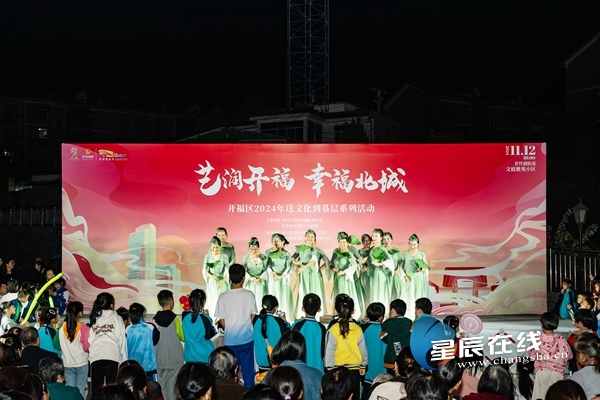 星辰在线11月13日讯(通讯员 雷乐依)11月12日,在长沙市开福区青竹湖街道,一场艺术盛宴在深秋夜晚热闹开场:“艺润开福 幸福北城”开福区2024年送文化到基层系列活动第三期精彩来袭,吸引了周边居民群众热情参与,引起热烈反响,现场热闹非凡,惠及群众近千人。