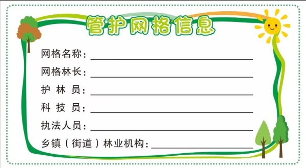 其次,制作身份证大小的便携小卡片。卡片正面印刷顺口溜,便于护林员随时查阅;背面则填写护林员负责网格的“一长四员”、乡镇(街道)林业工作人员姓名及联系方式,确保在发生紧急情况时,护林员能够迅速联系相关人员,及时处置和上报相关事件。