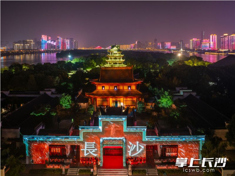 11月6日傍晚,橘子洲·江天暮雪文化园正式对外迎客。华灯初上,橘子洲拱极楼及江神庙区域的绚烂灯光被逐一点亮与湘江两岸楼宇的灯光交相辉映。前来观看的游客络绎不绝,沉浸式感受湖湘文化美学的魅力。