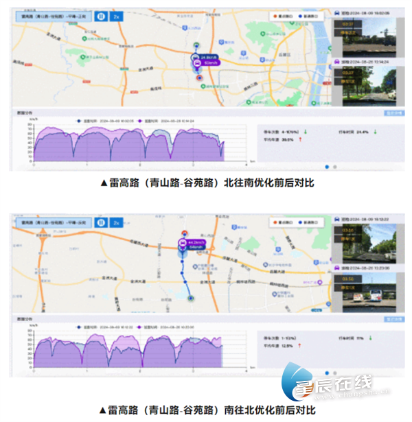 雷高路为高新区南北向主干道,北接岳麓大道,南接金洲大道。但由于沿线与之交叉的支路较多,信号灯路口较多。为提高市民驾驶体验感,长沙交警在雷高路(青山路-谷苑路)对各时段均设置了“绿波带”。据实测数据对比,雷高路优化后行程时间平均降低18.2%,停车次数下降75%。