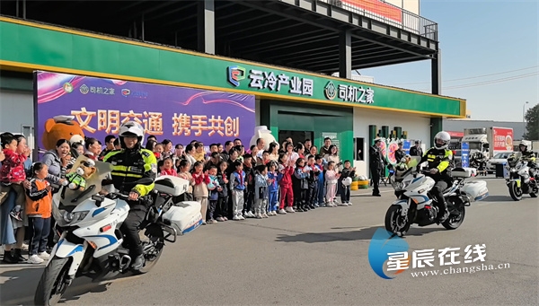 (12月1日,长沙交警联合长沙雨花经开区企业党委、工会共同举办交通安全亲子活动。)