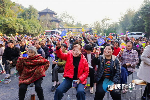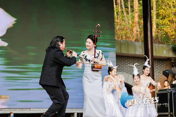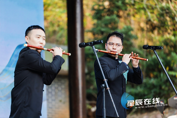 惠民演出带来的湖南民族器乐演奏同样精彩。弹拨乐三重奏《麓山遐想》独具特色,宛转悠扬;竹笛齐奏《春到湘江》激昂澎湃,奏出正宗湘味;大筒、唢呐与舞蹈《洞庭湖上百鸟鸣》恢弘壮观、酣畅淋漓;大筒齐奏《天山湘女》融合异域风格,更是将观众的热情推向高潮,现场观众欢呼声、叫好声不断,在初冬感受了一场视听盛宴。