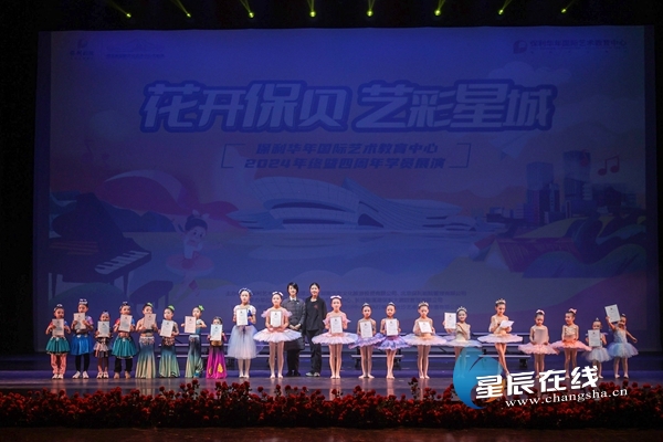 星辰在线1月15日讯(通讯员 陈慧)1月14日晚,“花开保贝 艺彩星城”保利华年国际艺术教育中心2024年终暨四周年学员展演活动在梅溪湖大剧院上演。本次展演由“启美之光”“育美之心”“践美之行”三个篇章组成,涵盖了芭蕾、中国舞、钢琴、合唱等多个艺术领域。